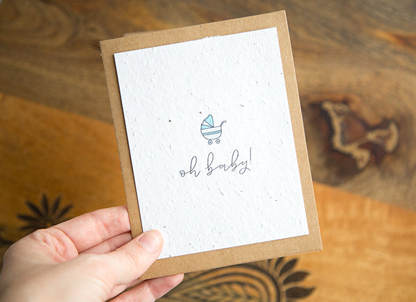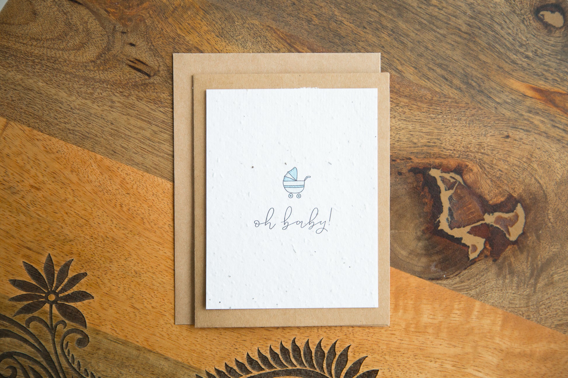 Celebrate the joy of a new baby with a plantable baby boy card for the new mom to be! The perfect gift for an expectant parent celebrating their bundle of joy. Every card includes a detachable, plantable, seed paper sheet and is hand written in custom, digitalized, calligraphy and includes planting instructions. Your gift of a card can grow along with the baby and bloom beautiful wildflowers.