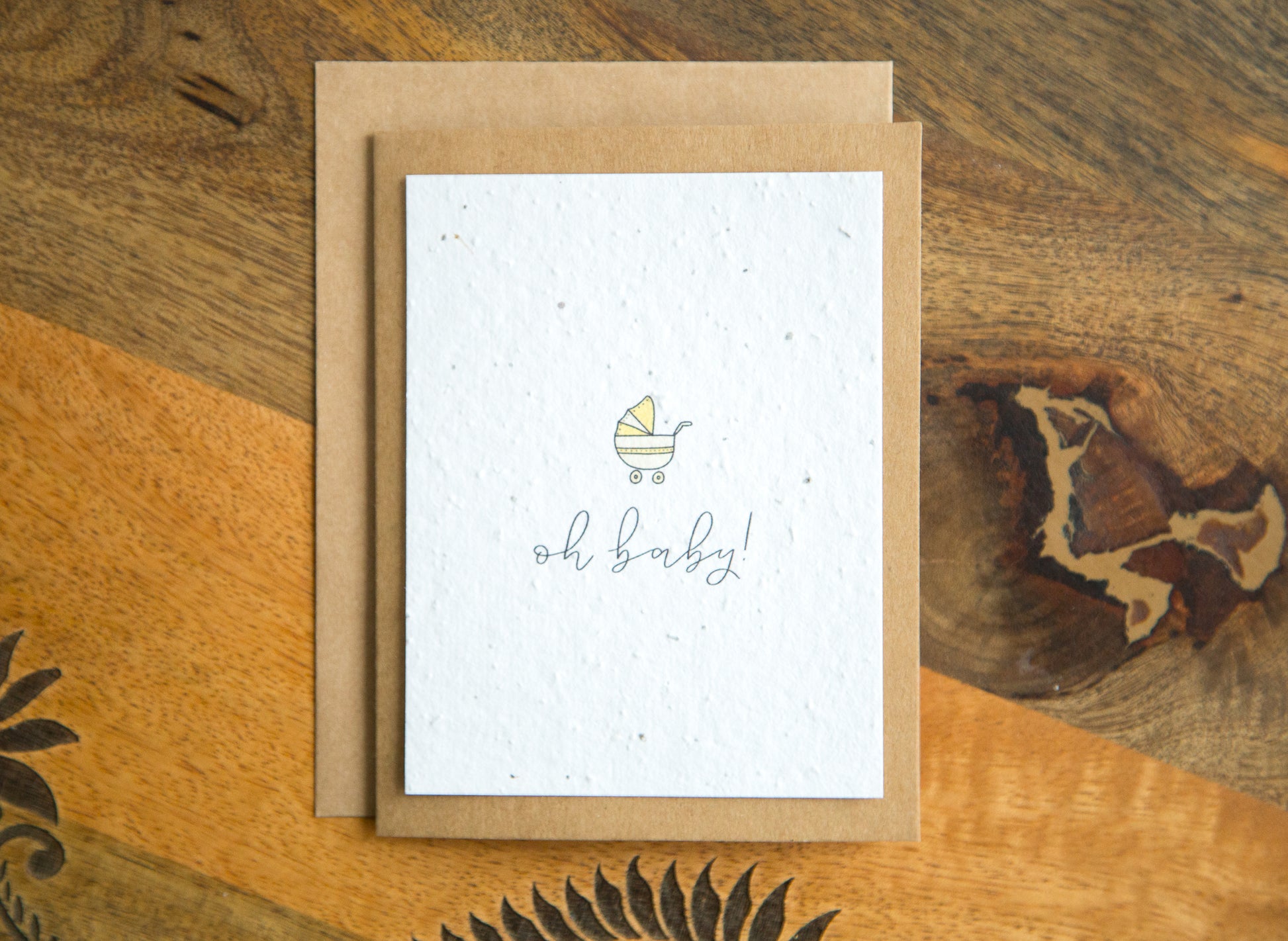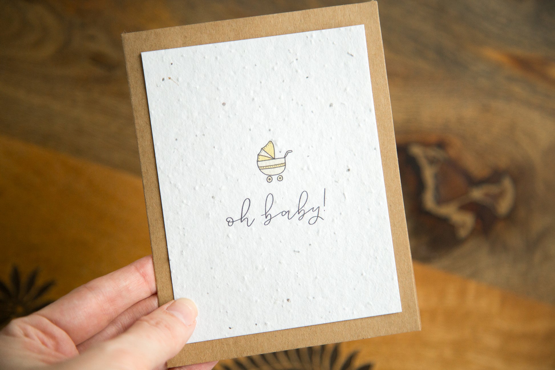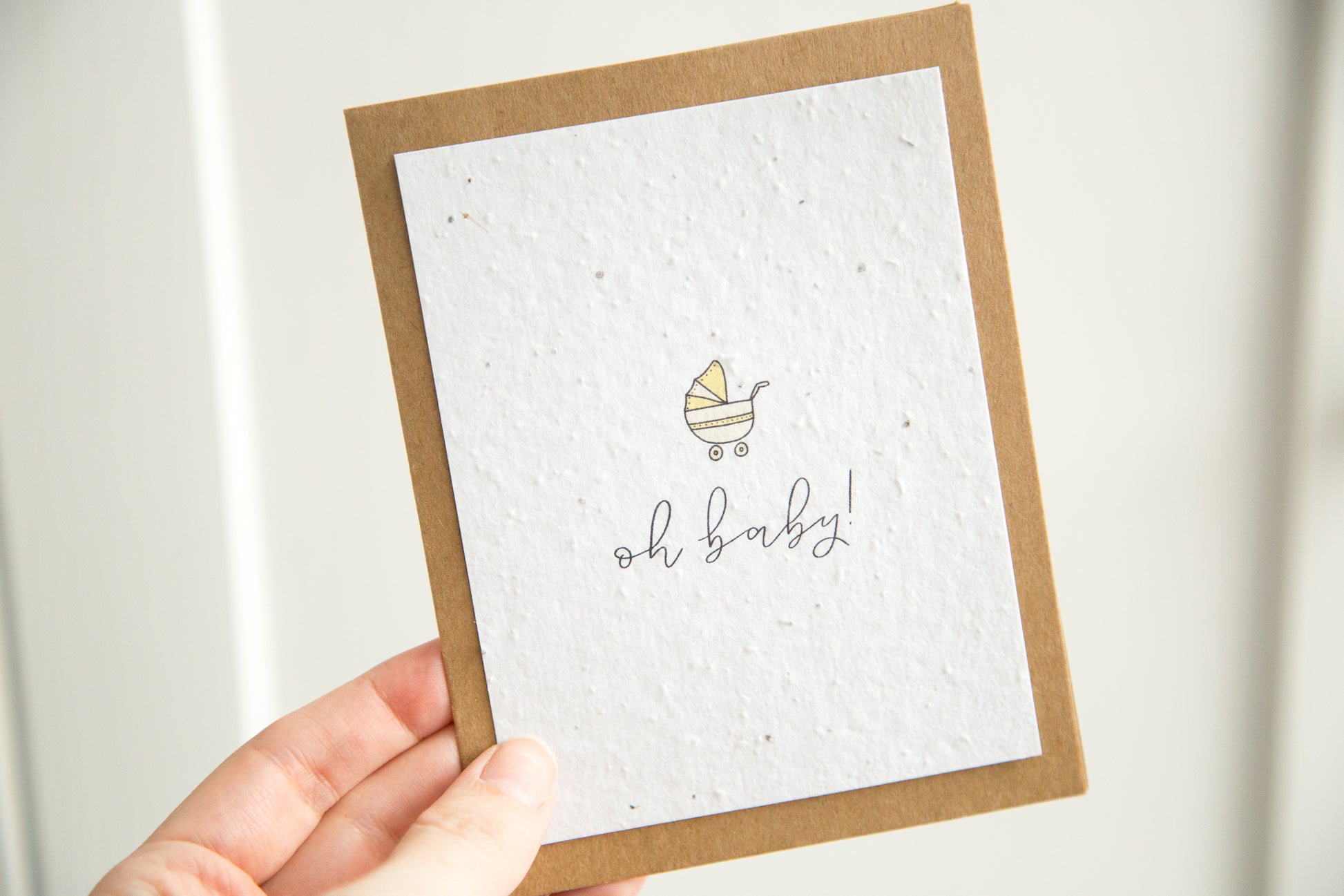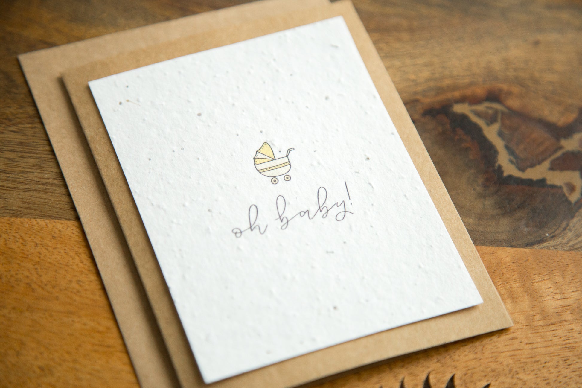 Celebrate the joy of a new baby with a plantable gender neutral card for the new mom to be! The perfect gift for an expectant parent celebrating their bundle of joy. Every card includes a detachable, plantable, seed paper sheet and is hand written in custom, digitalized, calligraphy and includes planting instructions. Your gift of a card can grow along with the baby and bloom beautiful wildflowers.