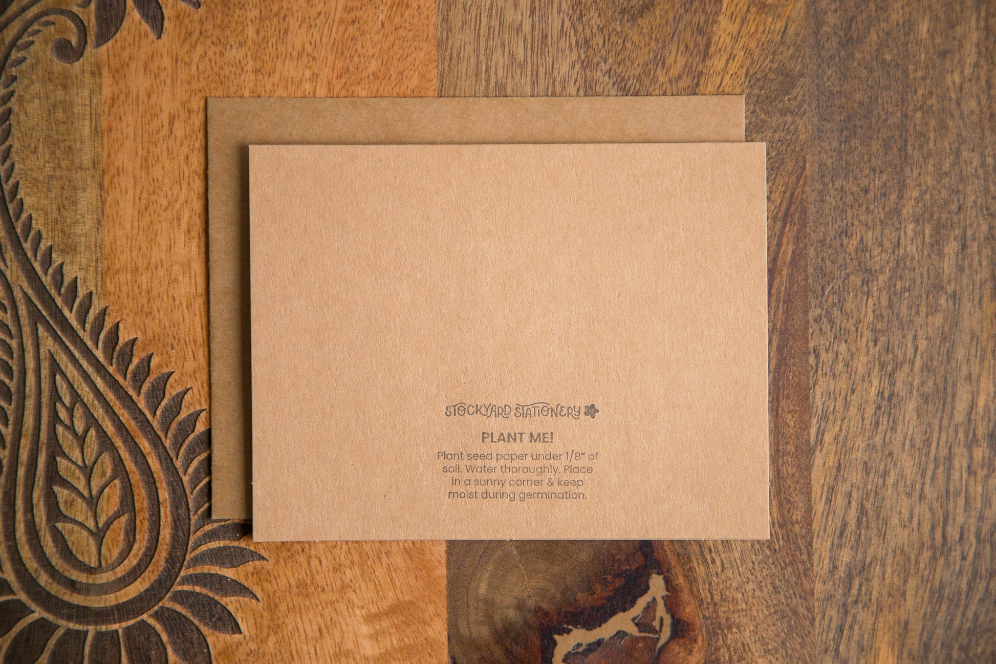 - White seed paper on kraft heavyweight cardstock with a matching envelope