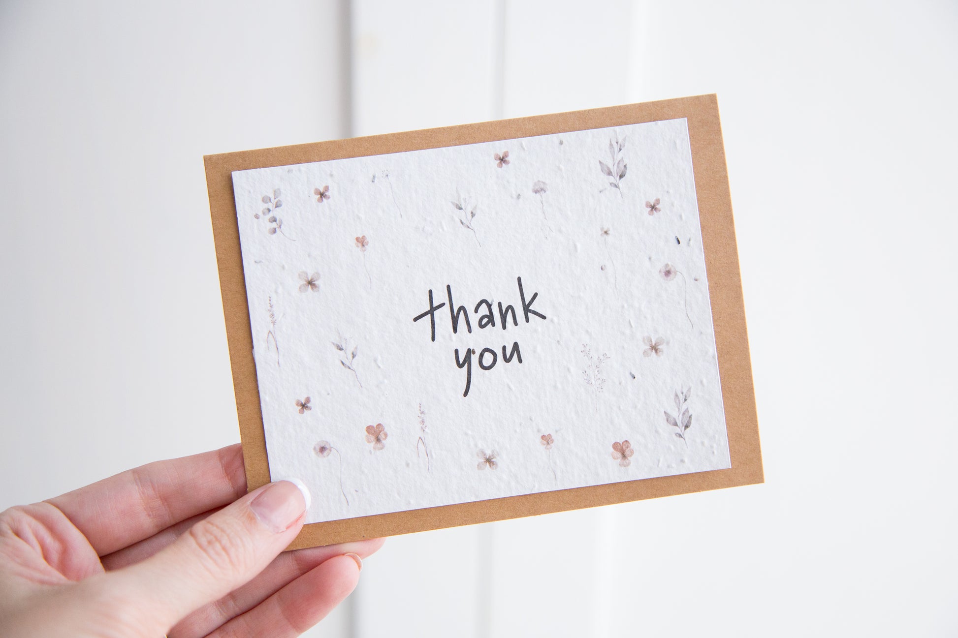 Express your gratitude with our floral plantable Thank You Card. Each card is embedded with a unique blend of six wildflower seeds, allowing your appreciation to blossom into a garden of stunning flowers. Crafted from eco-friendly, biodegradable materials, this card is not only a heartfelt message but also a gift to nature. Perfect for any occasion, our floral plantable Thank You Card is a sustainable way to show your heartfelt appreciation.