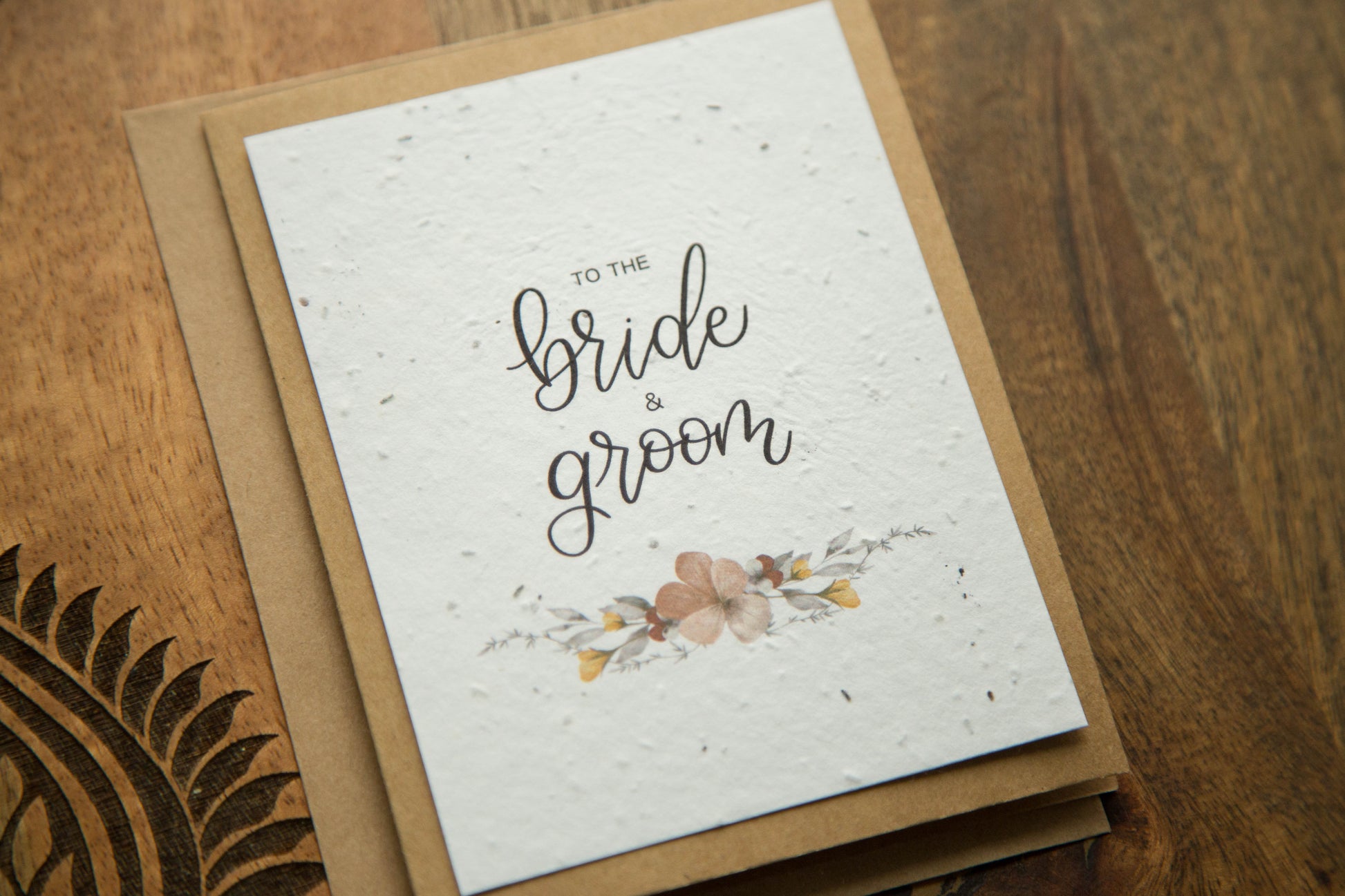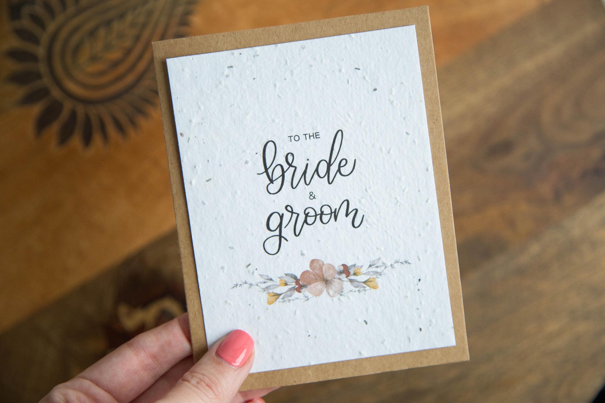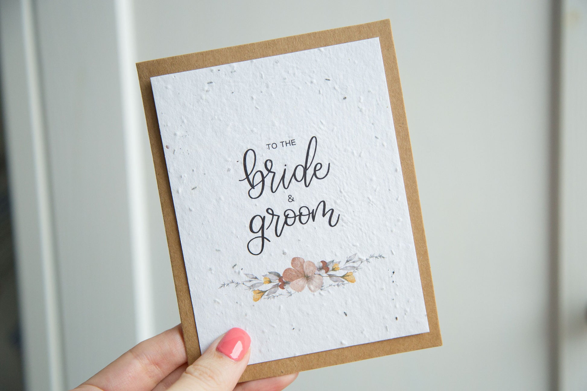 Celebrate love with our plantable wedding congratulations cards. Beyond being a traditional gesture, these cards offer a unique and eco-friendly twist. Crafted with care and commitment to sustainability, each card is embedded with a blend of wildflower seeds, turning your heartfelt wishes into a beautiful bloom of flowers.